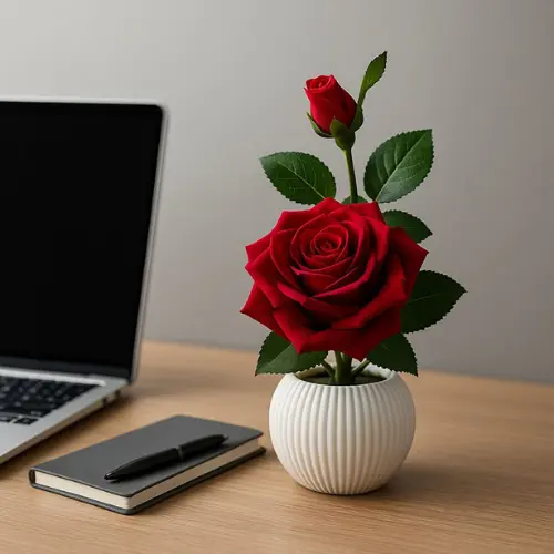 Highly Realistic Design: Intricate petals and lifelike leaves that mimic a real rose bonsai.