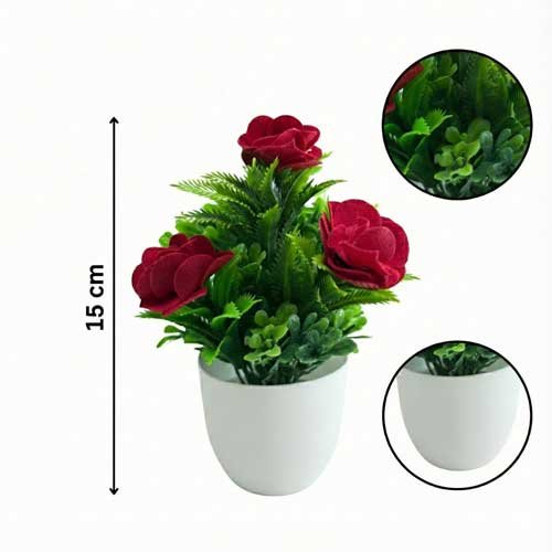 Ideal for contemporary home styling, minimalist interior decoration, workspace desk accent, apartment décor accessory, hallway console table décor, window sill decoration idea, boutique display arrangement, dining space centerpiece styling, home staging decoration, and festive gift hamper décor, this set blends sophistication with practicality.The clean white planters complement modern aesthetics while the realistic detailing provides a natural finish. Made using premium materials, these decorative floral arrangements maintain their vibrant look without sunlight, trimming, or watering.