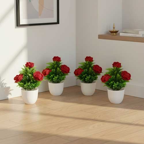 Transform your interiors effortlessly with this Artificial Red Rose Plant Set of 4, crafted to elevate your décor with timeless floral elegance. Designed with rich red blossoms and dense green foliage, these plants create a refined visual statement in both compact and spacious environments.